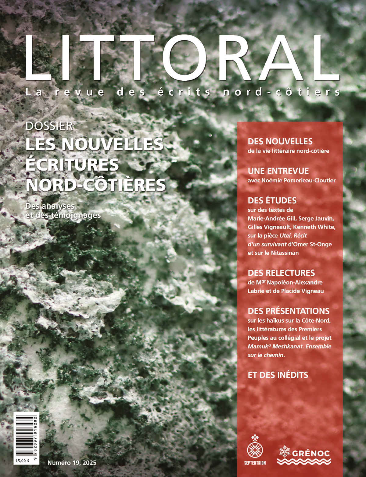 Publiée une fois l’an, la revue Littoral se veut le centre des activités de recherche du GRÉNOC. Ceux qui s’intéressent à la Côte-nord, à la littérature, à l’histoire régionale et nationale, aux cultures et à la création risquent de trouver dans cette publication spécialisée, mais pas exclusivement savante, des articles surprenants et accrocheurs dans lesquels l’imaginaire nord-côtier est peu à peu décrit et analysé.